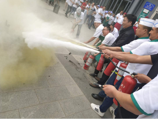 培训演练过程中,结合典型火灾案例,用通俗易懂的语言向接受培训人员讲解了火灾的发生及危害,日常工作中如何去检查和整改火灾隐患,如何组织人员扑救初期火灾,火场中如何逃生自救等知识。同时,还重点介绍了营业性场所火灾事故的主要特征、后厨火灾防范的特点、员工的消防安全教育等内容。