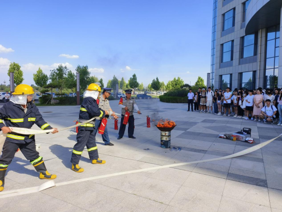 疏散演练结束后,保卫处工作人员带领消防应急分队给师生细致讲解逃生、报警等常见的消防安全问题,有针对性的了解消防安全需要注意的事项及校园生活中需要关注的火灾风险等,通过讲解典型案例,使师生加强消防安全的认知。持续开展了消防安全隐患防范和消防安全 “四个能力”提升教育培训,并就如何火场逃生自救、初期灭火方法和灭火毯、灭火器、消火栓等简易消防器材的使用方法进行了重点讲解和演示。