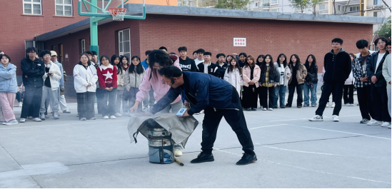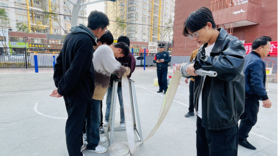 在实操环节,模拟火灾场景,浓烟滚滚。新生们在消防员和老师们的引导下,用湿毛巾捂住口鼻,弯腰低姿迅速有序地从疏散通道撤离,疏散过程迅速且有条不紊。随后,消防员现场演示了灭火器的正确使用步骤,新生们积极参与体验,掌握了灭火技能。这次演练增强了2024级新生的消防安全意识和自防自救能力。