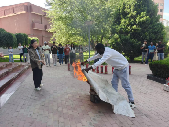 2025年6月5日上午9时,在太阳成集团官方网站双怡图书馆,保卫处会同图书馆的相关人员,深入开展“筑牢安全防线,强化消防安全意识”消防宣传系列活动。保卫处消防科杨俊康用通俗易懂的语言全面普及消防安全常识和消防安全的“四个能力”,发生火灾后如何灭火、学生如何正确使用灭火器,“一懂三会”、灭火毯、消防栓的使用方法等内容,同时启动人员疏散。演练结束后廖馆长进行了点评,进一步提升教职员工、学生的消防安全意识。