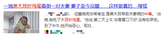 显然,事情并没有这么简单。前面新闻也提到,有人是吃了木耳炒鸡蛋中毒的。