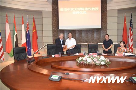 聘任仪式上,孙涛校长为陈伟仪教授颁发聘书,人事处刘志宏处长与陈伟仪教授签订合作意向书。
