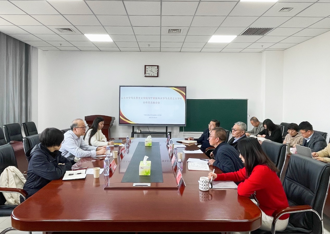 3月2日,为加快推进自治区重点马克思主义学院建设,不断加强和改进新形势下思政课改革创新,山东大学马克思主义学院周金龙副院长一行三人应邀来校座谈交流。学校党委副书记朱建华出席座谈会,马克思主义学院领导班子成员、办公室、教学办、科研办及教研室主任、青年博士代表参会,会议由马克思主义学院党总支书记王想平主持。