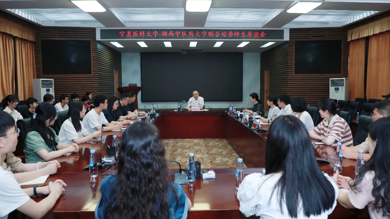在与湖南中医药大学联合培养师生座谈会上,在湘师生表示,感谢两校给予宝贵的跨校学习机会,这种学习经历开阔了眼界与视野,激发了工作与学习动力,提升了个人能力与素养,今后要努力在青春的赛道上跑出最好成绩,为两校高质量发展贡献力量。