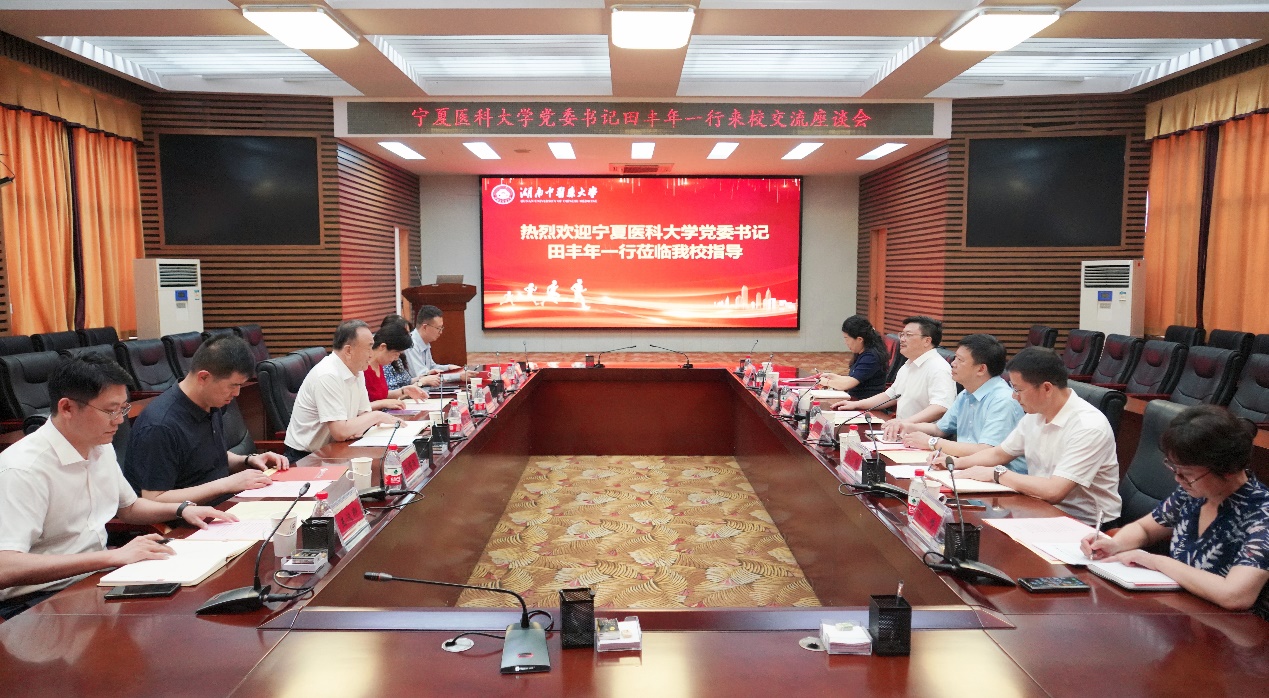 6月14日至15日,学校党委书记田丰年,党委常委、副校长刘志宏一行赴湖南中医药大学考察交流。湖南中医药大学党委书记戴爱国、党委副书记汤文胜,湖南中医药大学第一附属医院党委副书记、院长朱镇华,党委委员、副院长肖清华和陆小龙参加相关活动。