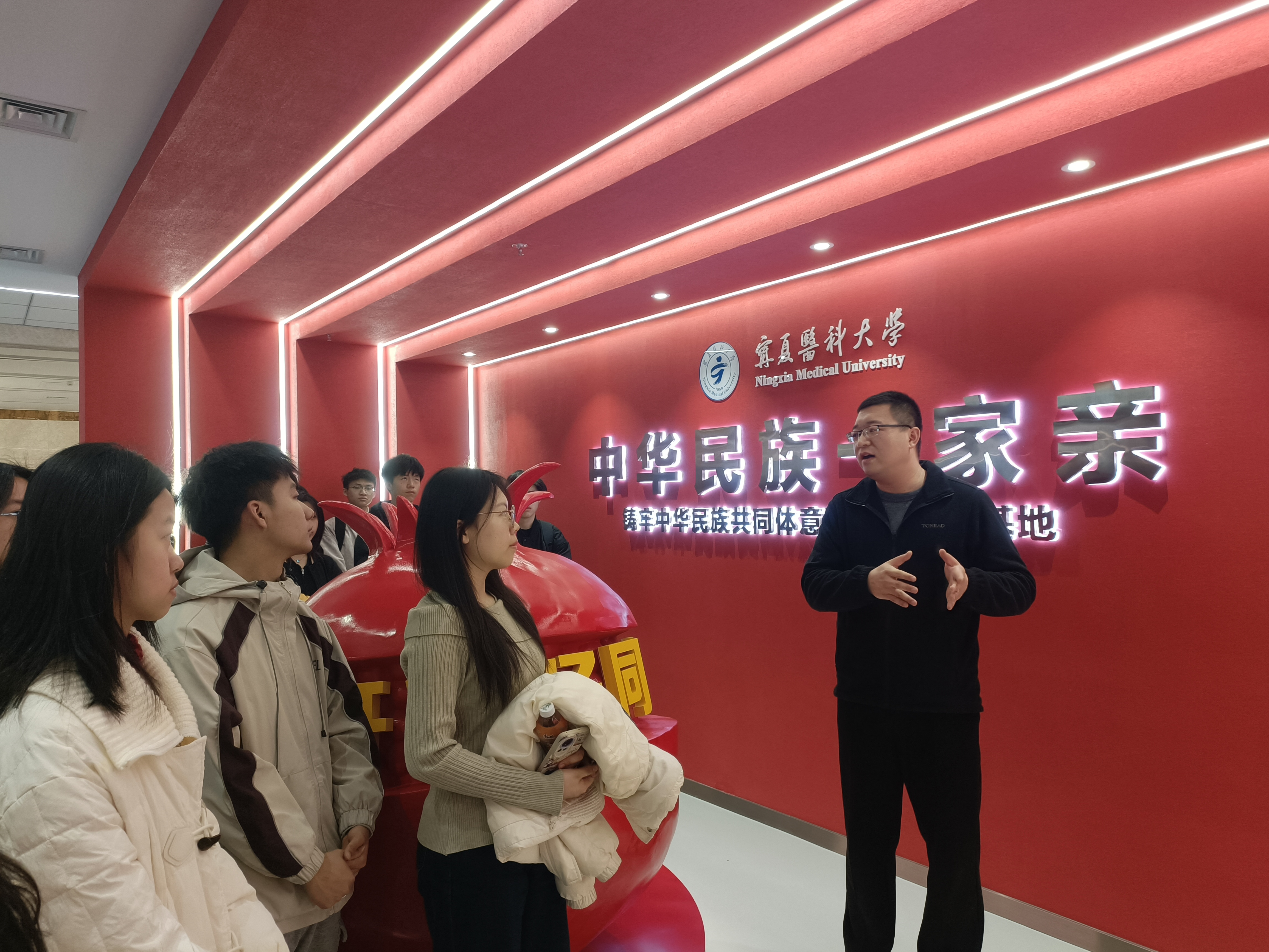 同学们依次参观了基地的六个展厅,通过珍贵的历史图片、详实的文献资料、栩栩如生的场景复原,深入了解了中华民族在几千年的历史进程中从“自在”到“自觉”再到“自强”的发展历程;深入了解了宁夏地区民族团结进步事业的发展历程和民族工作取得的成就。大家认识到了中华民族能够走向伟大复兴,宁夏各项事业能够取得斐然成就,关键在于有中国共产党的正确领导,关键在于有各族儿女的团结奋斗,关键在于有青年一代的责任担当。通过学习,大家对中华民族共同体意识的内涵有了更深刻的感悟,更加坚定了对中华民族的认同感与归属感,更加清晰地认识到民族团结进步事业的重要性。