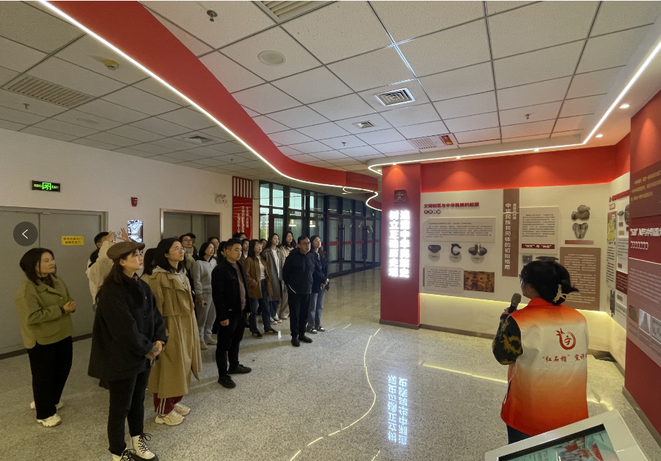 活动中,在学校“红石榴”宣讲团的讲解下,大家依次参观了教育实践基地的展厅,深入了解中华民族的历史文化、民族团结进步事业的发展历程以及宁夏地区的民族工作成就。
