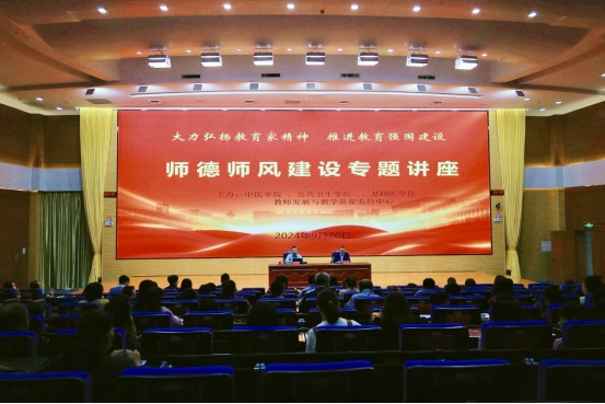 9月20日,中医学院联合公共卫生学院、基础医学院、教师发展与教学质量监控中心在雁湖校区尚行会议中心举办师德师风专题讲座,邀请中共宁夏区委党校社会与文化教研部刘智远博士作专题讲座,相关学院200多名教师参加。
