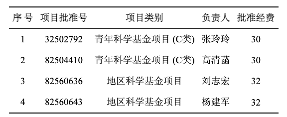 2025年8月27日,国家自然科学基金委员会正式公布2025年度国家自然科学基金项目评审结果。公共卫生学院共计获批国家自然科学基金项目4项。