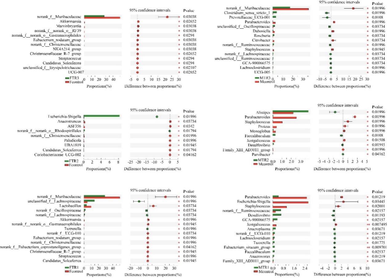 不同组间属水平上肠道菌群的差异性分析
