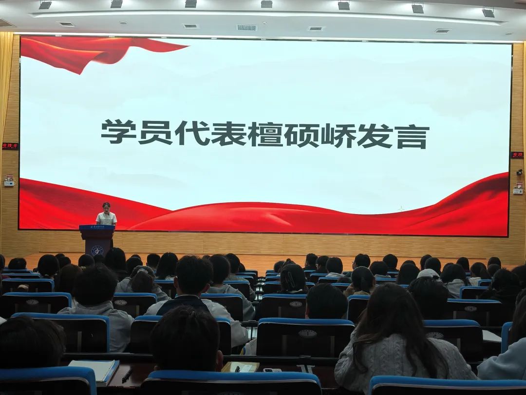 本期培训班负责人刘河利同学为各位学员讲解了青马班的理论和实践课程内容形式,宣读了培训班纪律和要求,2024级卫生检验与检疫班檀硕峤同学代表新一期学员作表态发言。她呼吁同学们以饱满的热情、坚定的信念、务实的作风,投入到青马工程的学习和实践中。