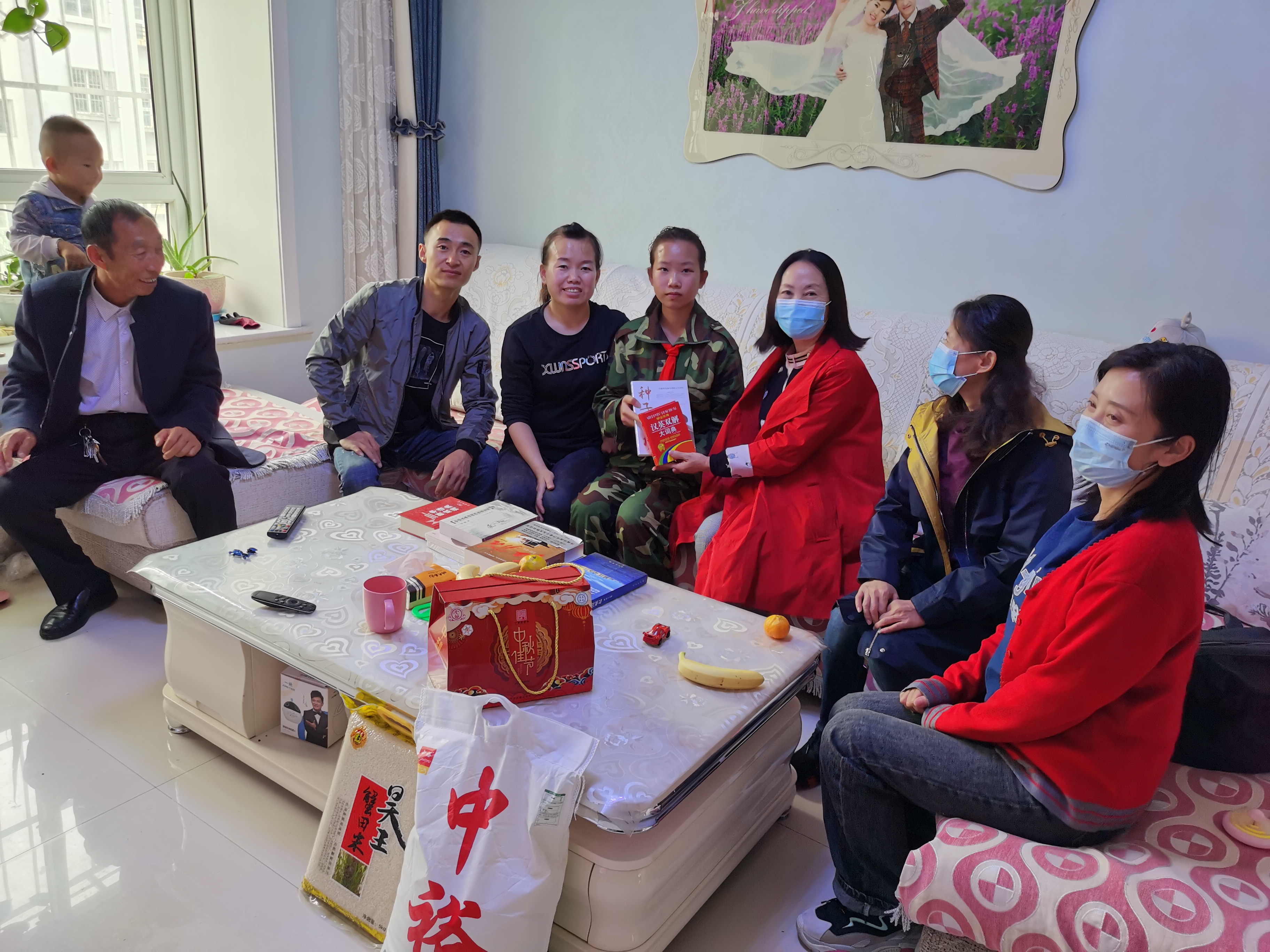 2020年9月30日,在“国庆节”“中秋节”前夕,学校工会及工会党支部一行4人来到青铜峡市扶贫结对帮扶对象许昌征家里看望慰问,详细了解家庭生活近况及孩子的学习成长情况,工会全体工作人员及党员捐助2000元人民币,送去了月饼、米、面等节日慰问品,还为正在读中学的女儿送去了字典、古诗文解析等学习书籍,鼓励他们用劳动改善家境、赢得美好生活,勉励孩子努力学习,多读书读好书,回报父母养育之恩,将来服务社会、服务国家。