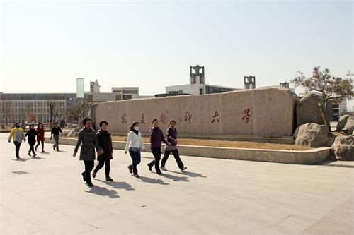 活动开始后,学院女教工从厚生楼出发,向西沿学校外围环形健步走一圈。大家兴致勃勃,一路欢声笑语,沐浴着明媚的阳光,呼吸着清新的空气,欣赏这校园的美丽景色,体会着学校的发展,也深深地感受到了学校大家庭的温暖。