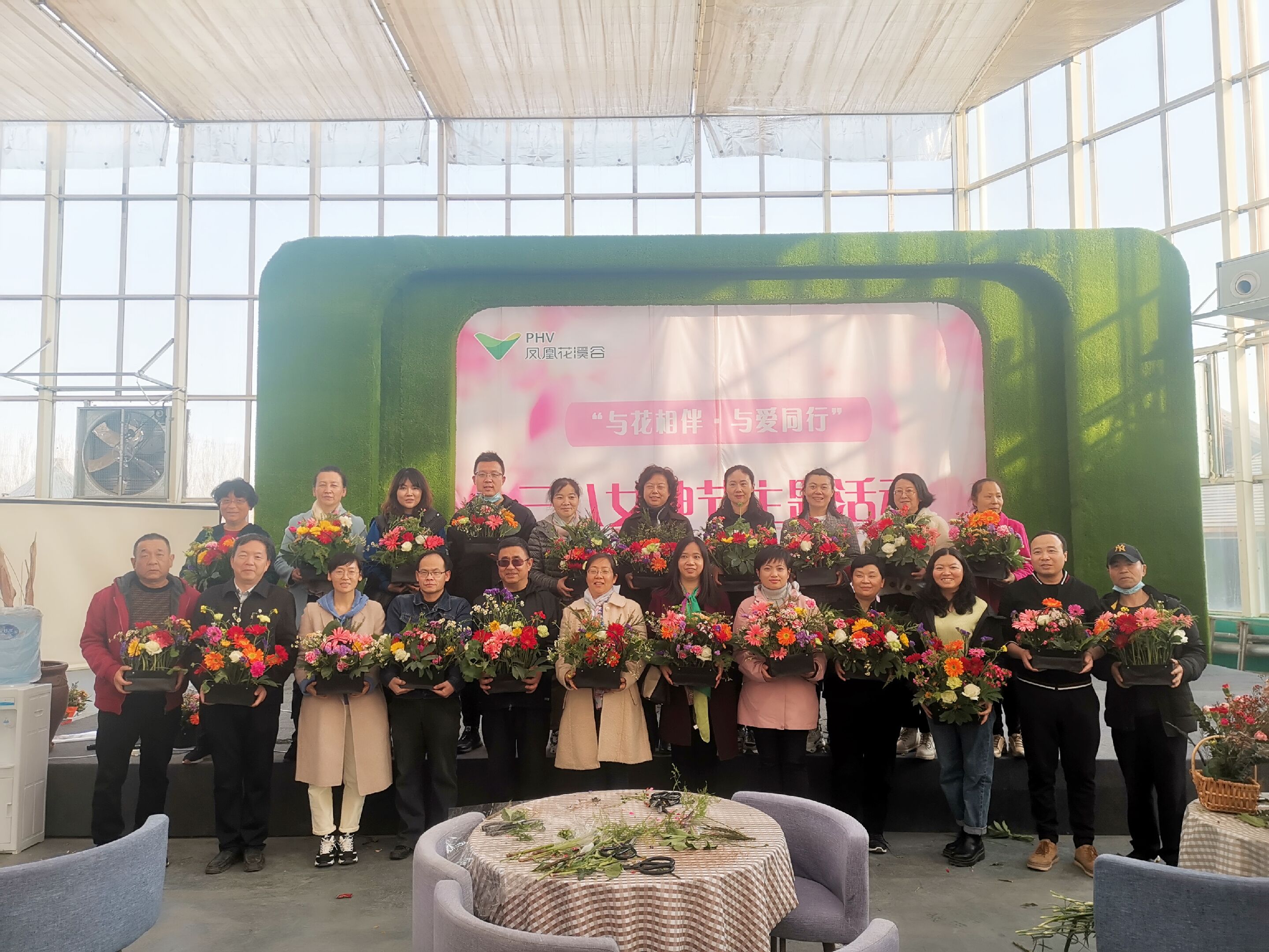 来到花溪谷花卉园,花艺师向大家讲解了插花的基本知识和技巧,并将不同风格的插花作品一一展示给大家,女职工们对插花表现出了极大的兴趣,在花艺师耐心细致地指导下修枝剪叶,很快一件件精美的作品展现眼前,大家相互欣赏、品评,看着眼前一盆盆色彩缤纷、形态多姿的艺术品,每个人的脸上都绽开了如花般的笑容。