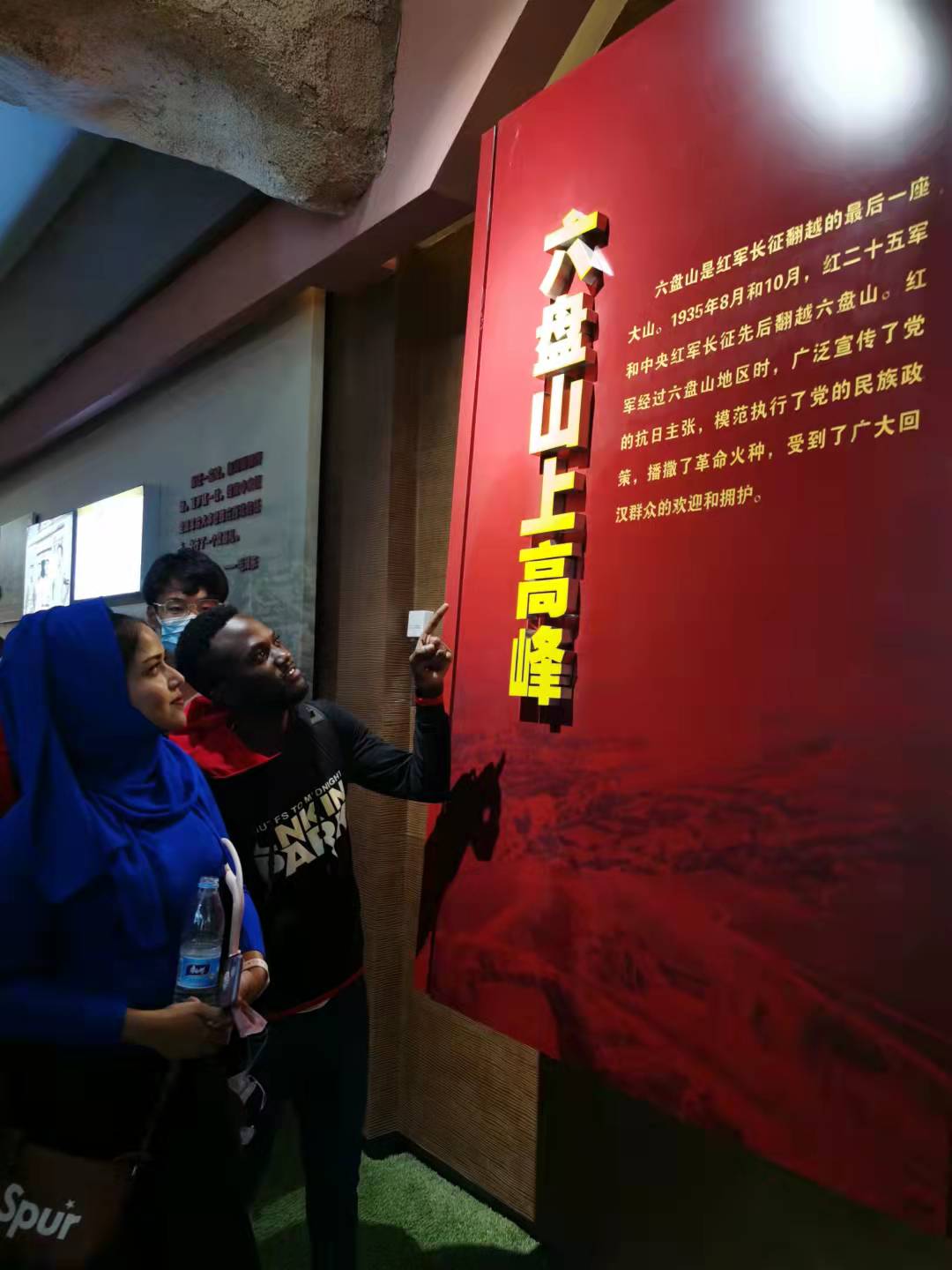 10月1日,留学生们登上六登上六盘山红军长征纪念馆,聆听红色故事,感悟长征精神。在纪念馆内,留学生们认真观看了一幅幅记录长征历史的珍贵图画,浏览了一件件蕴藏长征精神的朴素物件,倾听了一个又一个感人的长征故事,对中国的长征历史有了一定的了解。在山顶的红军长征纪念碑前,留学生们申请诵读《清平乐六盘山》。“六盘山上高峰,红旗漫卷西风……”在气势磅礴的诗词中,留学生们感受到的是昔日中国共产党取得长征胜利的雄浑气魄。最后,留学生们发自内心的祝福伟大的中国生日快乐。