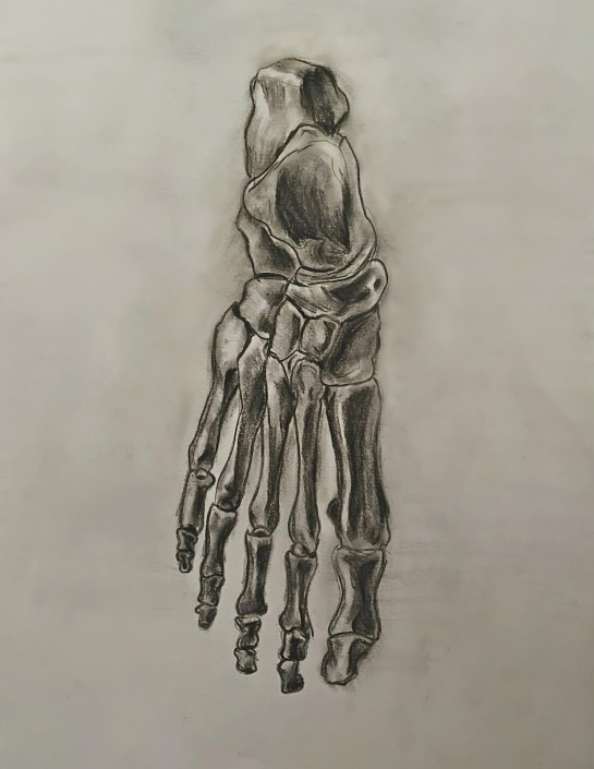 This is a dorsally drawn skeletal structure.The intricacy of it fascinates me as to how 1/4 of our bones are present here executing such precise movements.