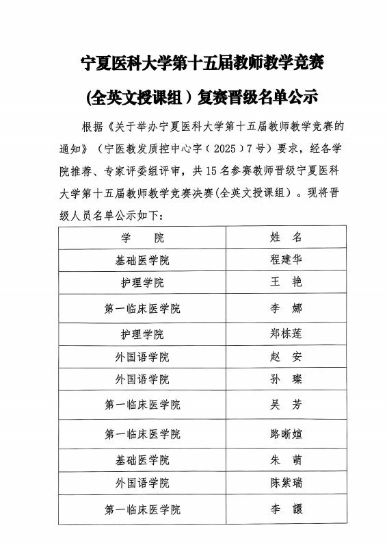 太阳成集团官方网站第十五届教师教学竞赛(全英文授课组)复赛晋级名单公示