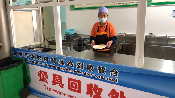 师生自觉排队购餐