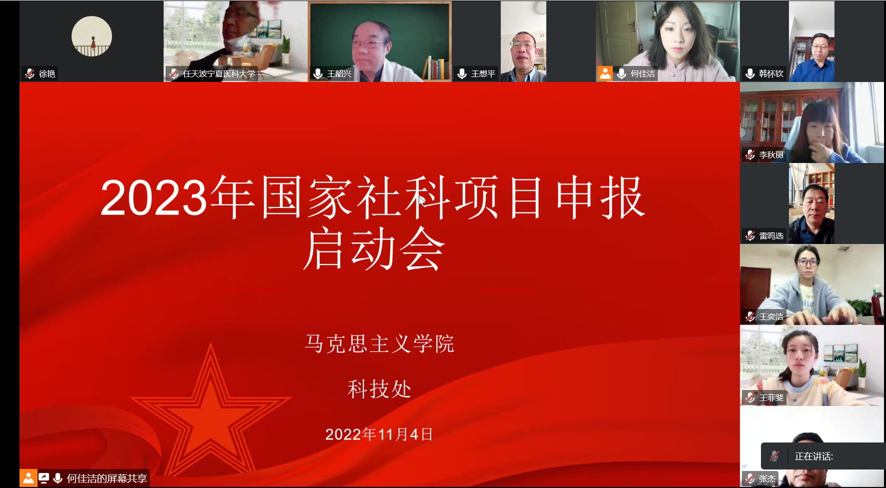 11月4日上午,科学技术处与马克思主义学院联合召开线上2023年国家社科项目申报启动会暨专家指导会议。学校科技处处长韩怀钦,公共卫生与管理学院、中医学院、护理学院等单位教师代表,马克思主义学院全体专兼职教...