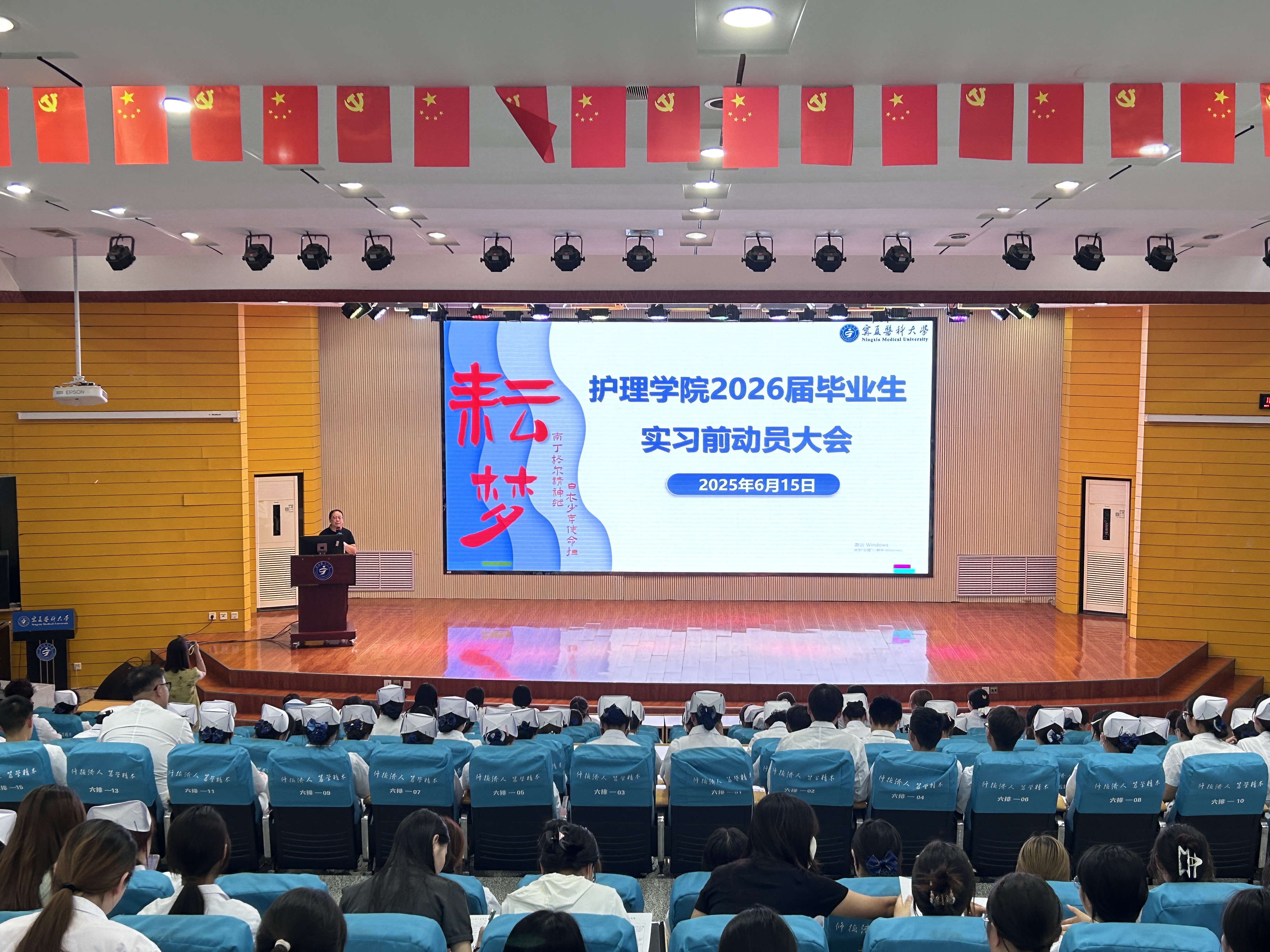 6月15日下午,护理学院在应谦楼启思学术报告厅召开“南丁格尔精神继 白衣少年使命担”主题2026届毕业生实习前动员大会。学院学生工作负责人,学生工作办公室、教学管理办公室老师及全体2026届毕业生参会。会上,...
