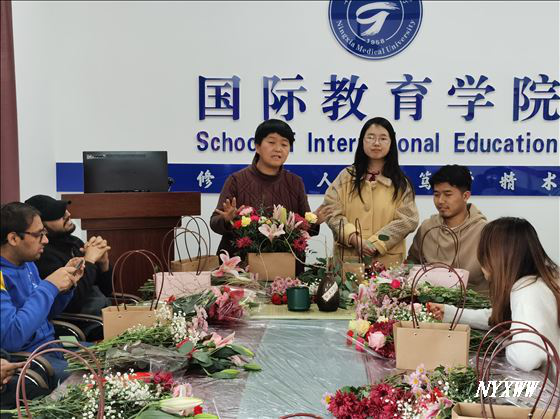 12月16日,国际教育学院举办“插花品香 诗情花意”留学生文化体验活动,20余名在校留学生参加活动。活动特邀宁夏宗氏花世界创办人宗春兰老师现场讲授插花的文化、技巧和中国传统花艺知识,细致地讲解了各类花型...