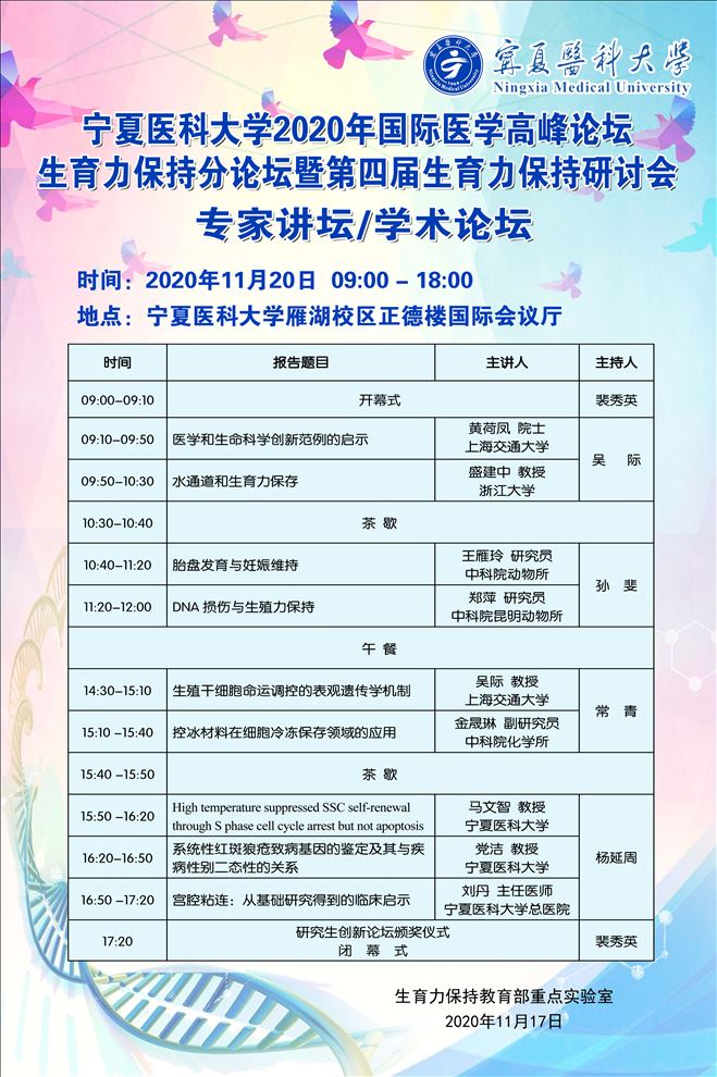 雁湖论坛:太阳成集团官方网站2020年国际医学高峰论坛生育力保持分论坛暨第四届生育力保...