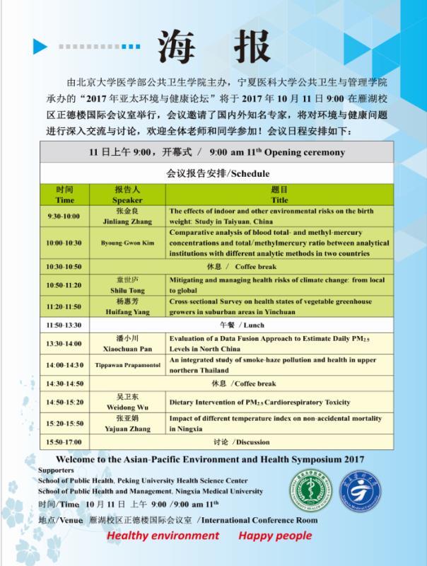 学术论坛:2017年亚太环境与健康论坛