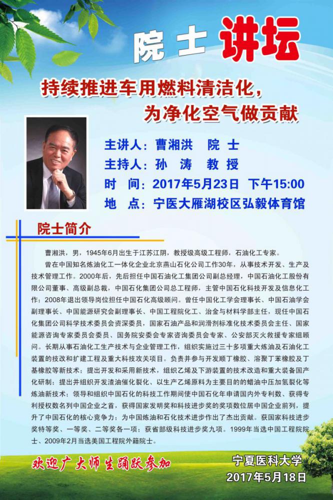 院士讲坛(2017年第二期):持续推进车用燃料清洁化 为净化空气做贡献——曹湘洪院...