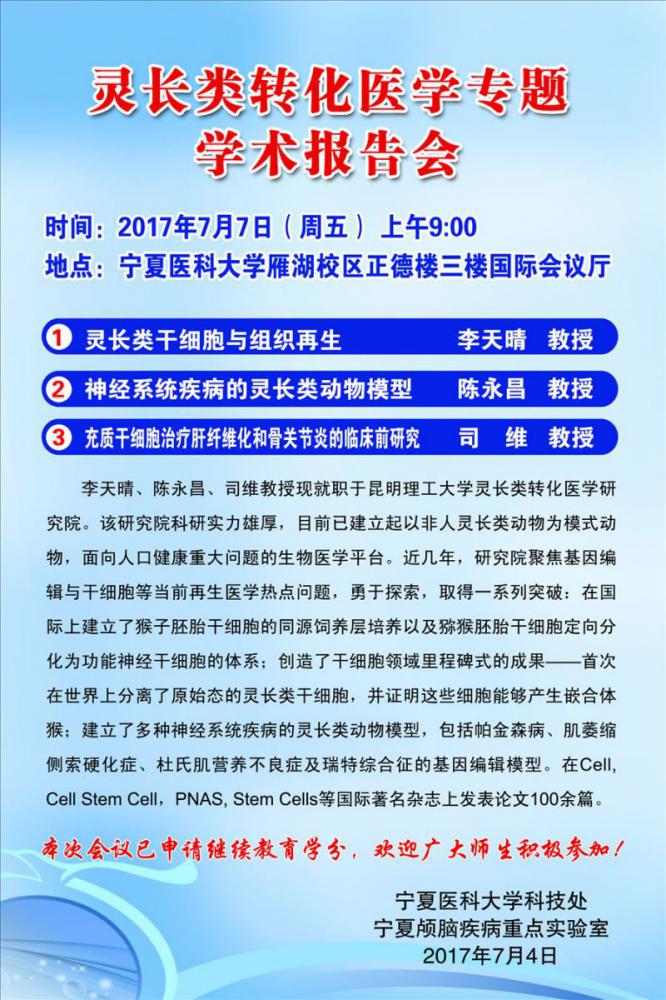 学术报告:灵长类转化医学专题学术报告会