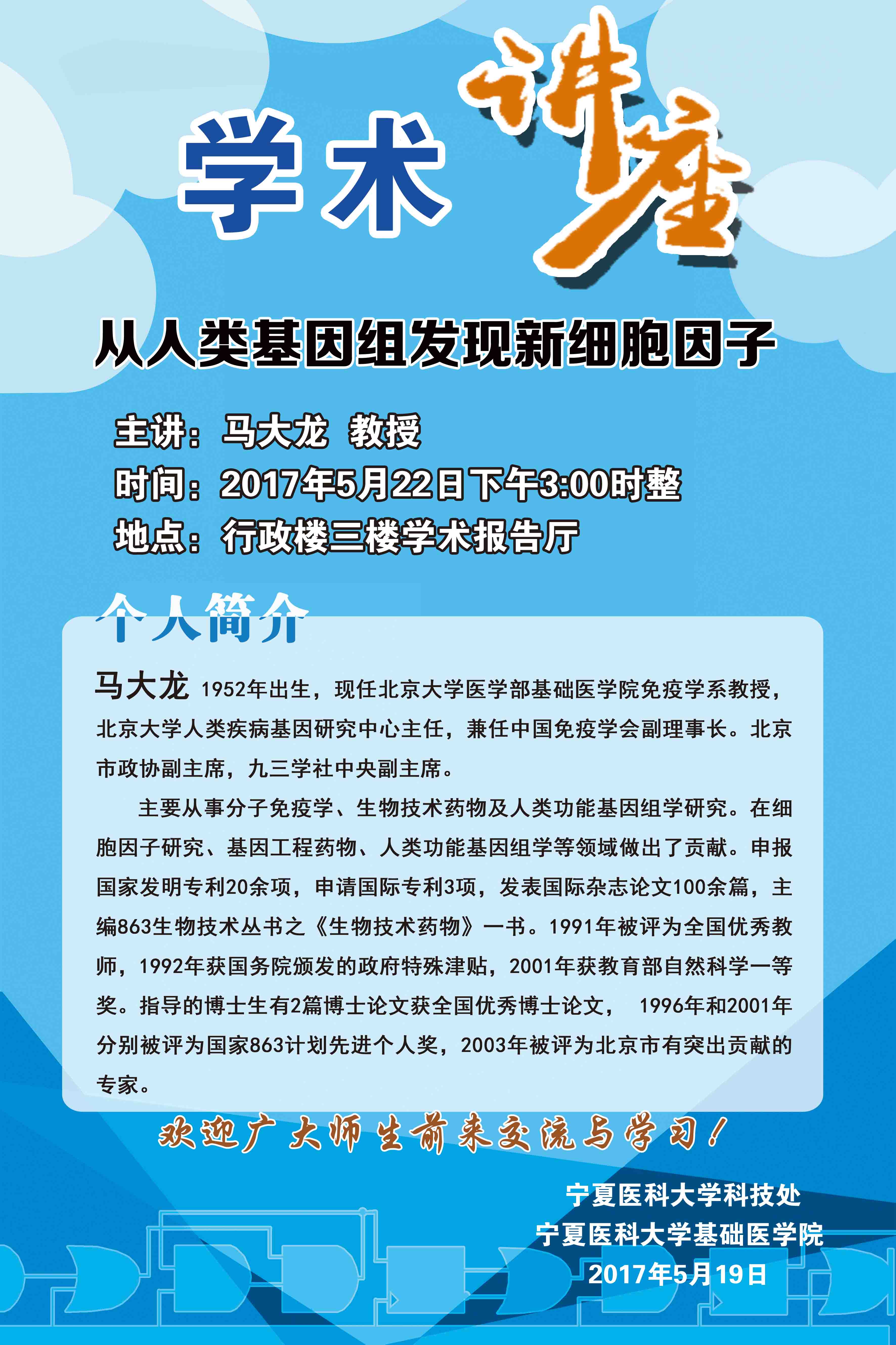 学术讲座:从人类基因组发现新细胞因子——马大龙教授