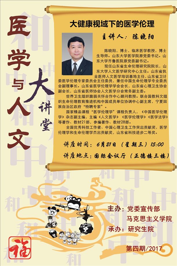 医学与人文大讲堂(2017第四期):大健康视域下的医学伦理——陈晓阳教授