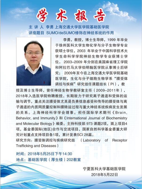 大医讲堂:SUMO/de SUMO修饰在神经系统的作用——李勇