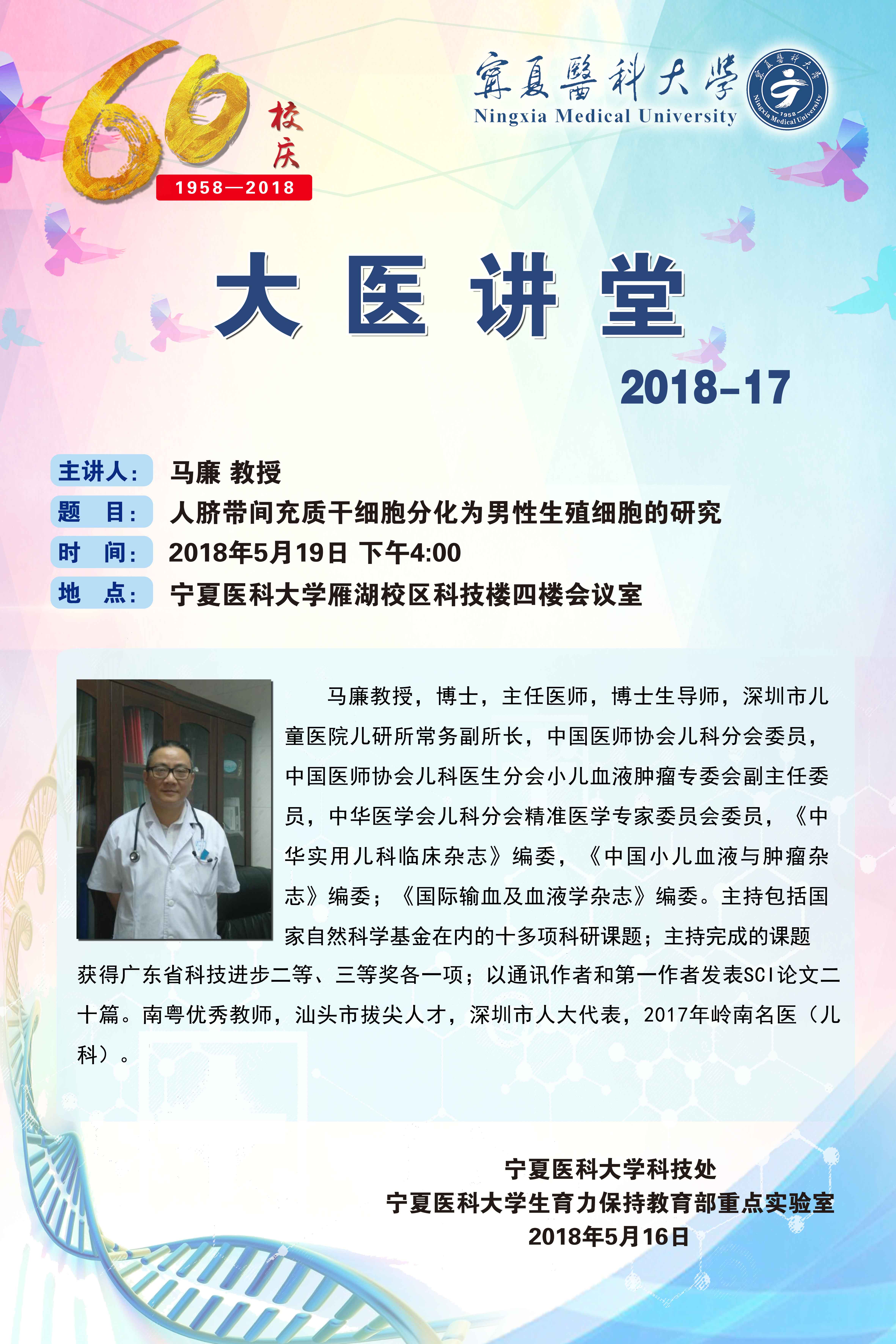 大医讲堂:人脐带间充质干细胞分化为男性生殖细胞的研究——马廉