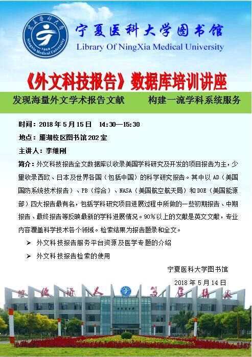 雁湖论坛:《外文科技报告》数据库培训讲座——李维刚