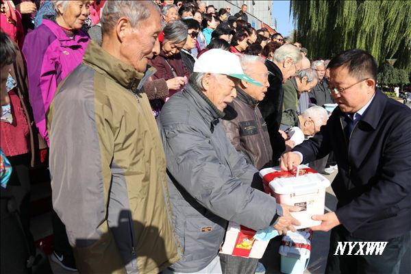 党委副书记牛阳向老同志送上节日礼物