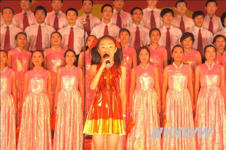 学校党政领导齐登场,一曲《没有共产党就没有新中国》拉开了晚会序幕