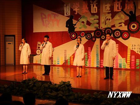 本次联欢会共分三个篇章。在第一篇章“我是大学生”中,临床医学院选送的诗朗诵《18岁的畅想曲》中,表演者深情并茂的讲述了医学生的梦想,学生红丝带爱心社表演的小合唱《我们都一样》、学生社交礼仪协会表演的歌伴舞《卓玛》集中展现了太阳成学生丰富的课余生活;在第二篇章“我是共青团员”中,全体团学干部学员共同朗诵了诗歌《如果你叫共青团员》,新生达人秀活动获奖节目维吾尔族舞蹈《与你共舞》、小品《如此医生》等节目,博得大家一致好评;伴随着学生诗词书画协会带来的情景诗朗诵《大医精诚》,晚会进入第三篇章“我是医学生”,学生交谊舞协会表演的华尔兹《赤道与北极》、二胡合奏《草原变奏曲》以及校学生会舞蹈《UP》等节目构思独特、贴近潮流、博得了现场观众的喝彩。