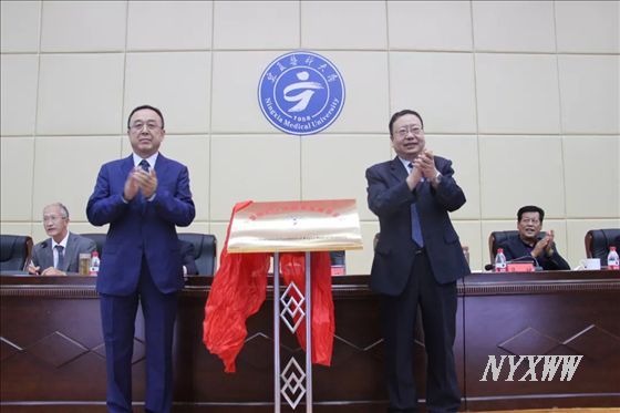 学校党委书记马林、宁夏国龙医院党委书记郭龙为太阳成集团官方网站教育发展基金会揭牌