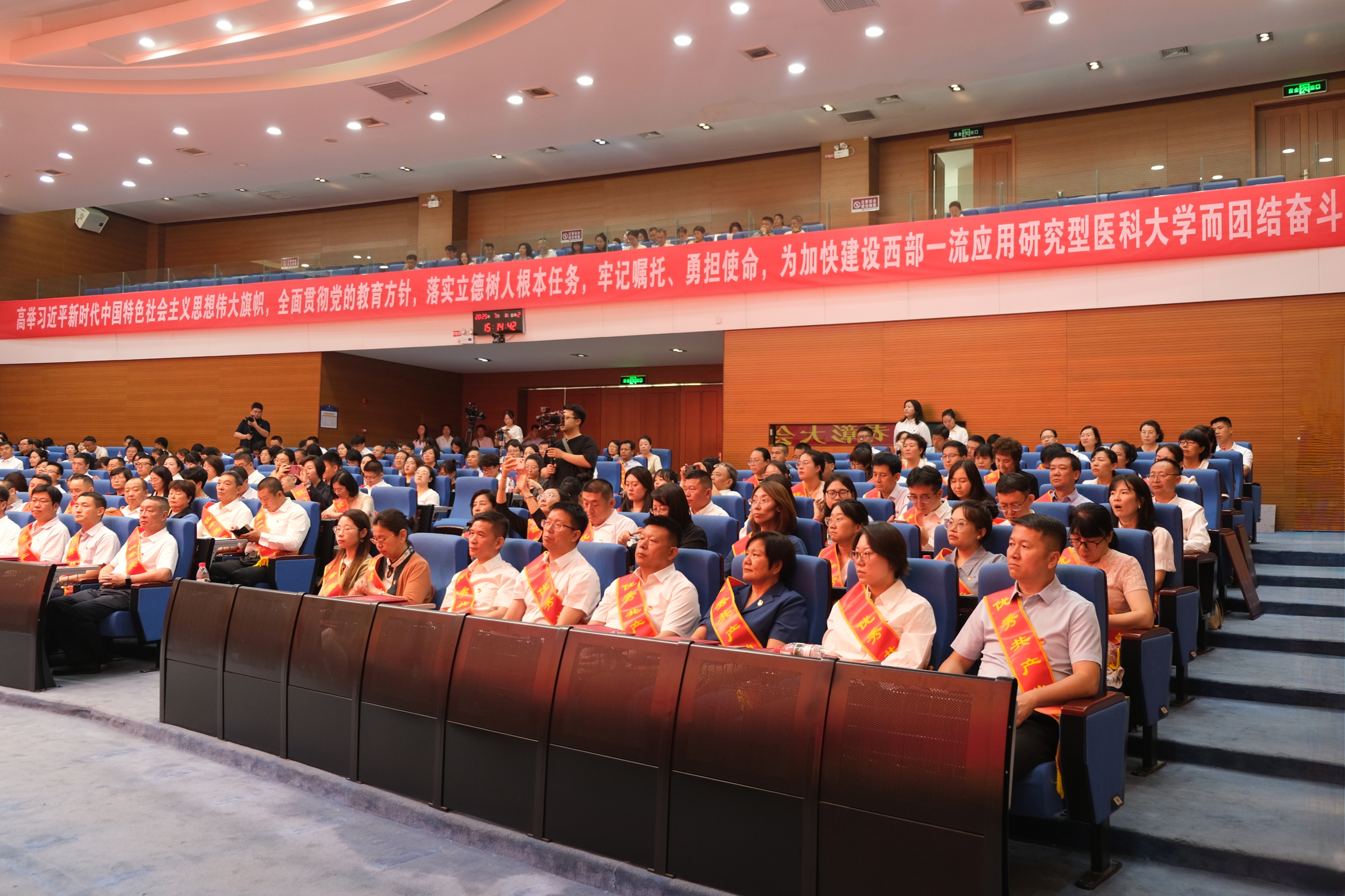 会议强调,学校作为自治区医学教育事业和医疗健康事业的“双龙头”,要坚持和加强党对学校工作的全面领导,树立率先争先意识,谋在先、走在前,以党建为引领推动学校各项事业高质量发展再上新台阶。一是要坚持不懈加强政治建设,着力铸牢政治忠诚。学校各级党组织和党员干部职工要始终把政治建设放在首位,持之以恒用习近平新时代中国特色社会主义思想凝心铸魂,不断锤炼党性、砥砺品格,坚定理想信念,筑牢信仰之基,深刻领悟“两个确立”的决定性意义,坚决做到“两个维护”。二是要坚持不懈提升党建质量,着力夯实基层基础。要进一步强化思想认识,牢固树立“抓好党建就是最大政绩”理念和抓基层、强基础鲜明导向,持续推进基层党组织建设提质增效工程,不断提升党建工作质量。三是要坚持不懈推进全面从严治党,着力抓实纪律作风。要把增强党性、严守纪律、砥砺作风贯通起来,狠抓作风建设,一体纵深推进学习教育、系统整治、巡视整改、“不担当不作为问题”集中整治和校内巡察,牢固树立问题导向、实干导向,巩固和扩大风清气正、团结向上、干事创业的良好政治生态和作风环境。四是要坚持不懈强化党建引领,着力服务中心大局。全校各级党组织和广大党员干部要坚持围绕中心抓党建、抓好党建促发展,做到党建与业务工作同谋划、同部署、同推进、同考核,充分发挥党组织的战斗堡垒作用和党员的先锋模范作用,锐意进取、真抓实干,攻坚克难、兴校兴院,跳起摸高、争先进位,在本职岗位上创新业绩、做新贡献,为党旗增辉,为党徽添彩。