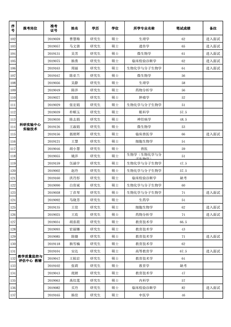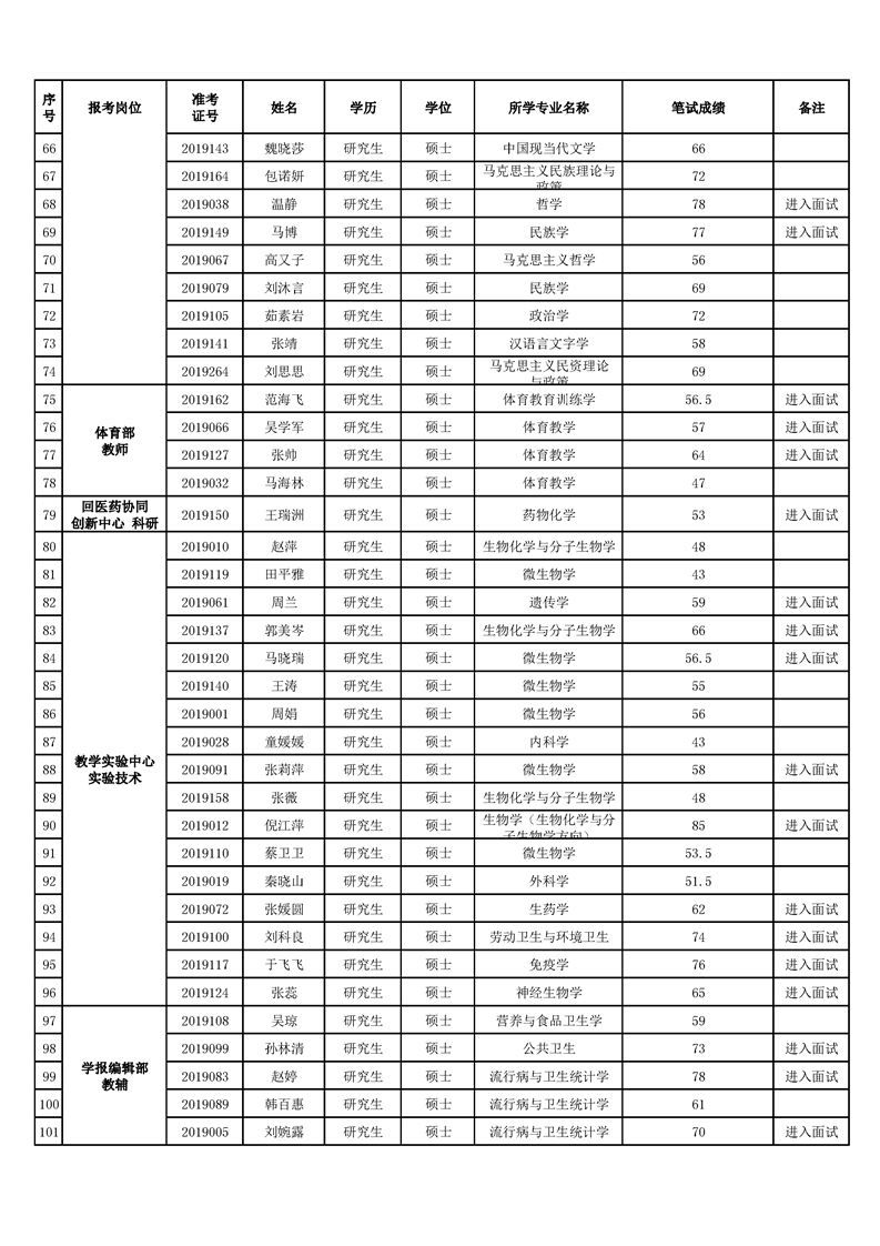 太阳成集团官方网站2019年公开招聘硕士工作人员笔试成绩公示