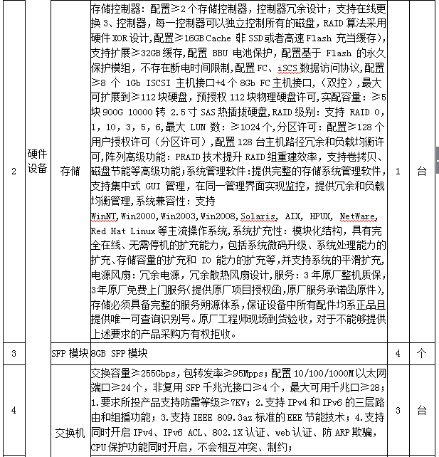 1、针对招标文件四、货物需求及技术要求,原招标文件内容为:
