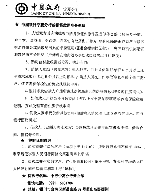 2、 需商业贷款的按照中国银行相关要求准备贷款资料。