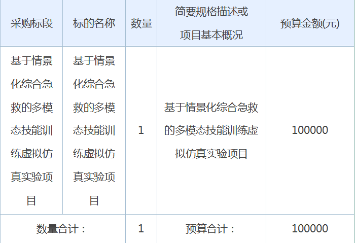 项目名称:太阳成集团官方网站基于情景化综合急救的多模态技能训练虚拟仿真实验项目采购项目
