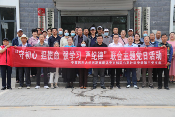 6月6日,学校离退休干部党委西夏离退休党支部与同心苑社区第三党支部在同心苑社区广场联合举办“守初心、担使命、 强学习、严纪律”主题党日活动,30余名党员参加活动。