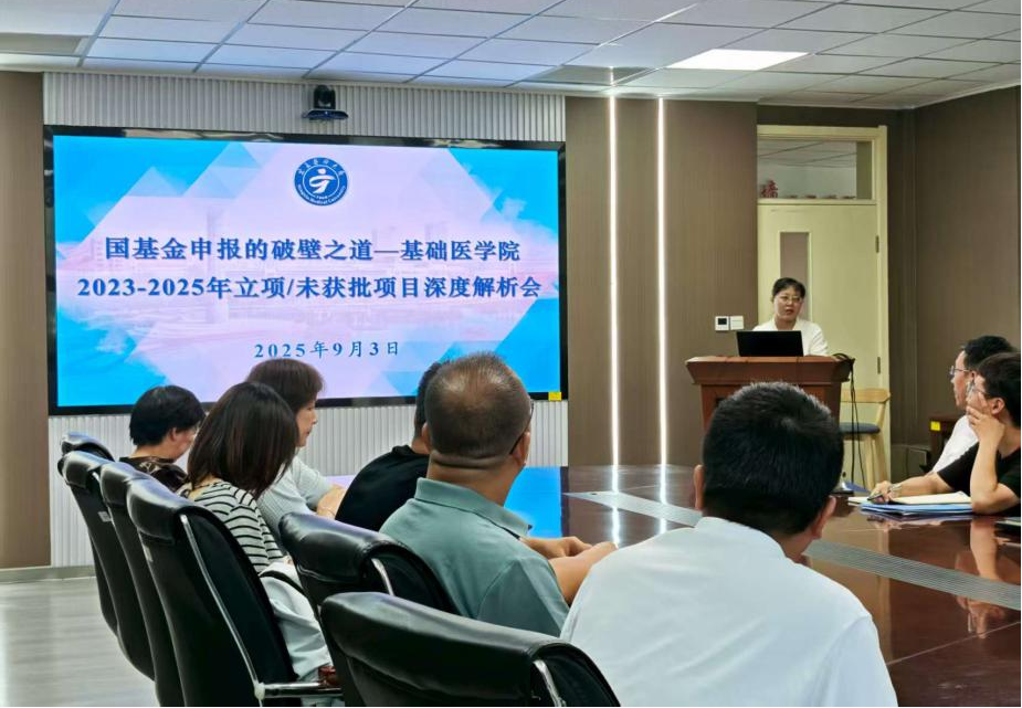 9月3日,基础医学院在厚生楼书香学苑开展2026年度国基金申报培训会。学院党委书记张艳丽教授作为主讲人,深度解析“国基金申报的破壁之道”,与学院教师及青年博士进行了一场兼具理论深度与实践指导的学术研讨。
