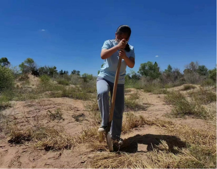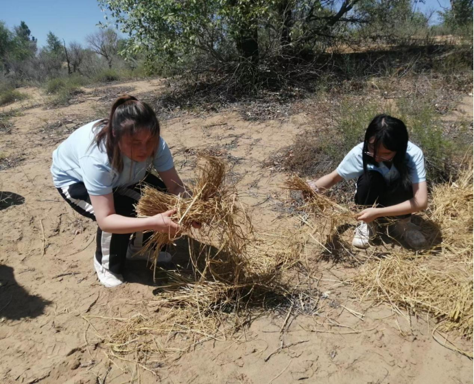 在哈巴胡国家级自然保护区,实践团成员不仅领略了哈巴胡的优美风景,也知晓了哈巴胡名字的来历及其保护的价值和意义,同时,大家在这里对治沙史上的奇迹“草方格治沙”的方法进行了学习并实践,受益匪浅。