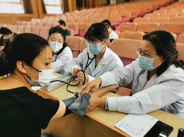 体检义诊活动自10月29日至30日为期两天,暖心的两位校医和志愿者一边仔细为后勤保障人员测量血压、血糖,一边耐心询问他们的既往病史和目前身体状况,尤其是封校这段时间以来身体有无抱恙。针对个别异常人员,耐心细致讲解高血压、糖尿病、腰肌劳损、痛风等常见病的医疗保健知识。指导相关人员规律、按时服药。对有慢性病及特殊既往病史人员普及了有针对性缓解疼痛等方面的医疗知识。对更年期身体出现明显不适的女员工进行了心理疏导和就医指导。两天时间,共接受咨询和测量血压101人次,检测尿酸、血糖85人次,查验血型52人次,并喜获一名“熊猫血”。