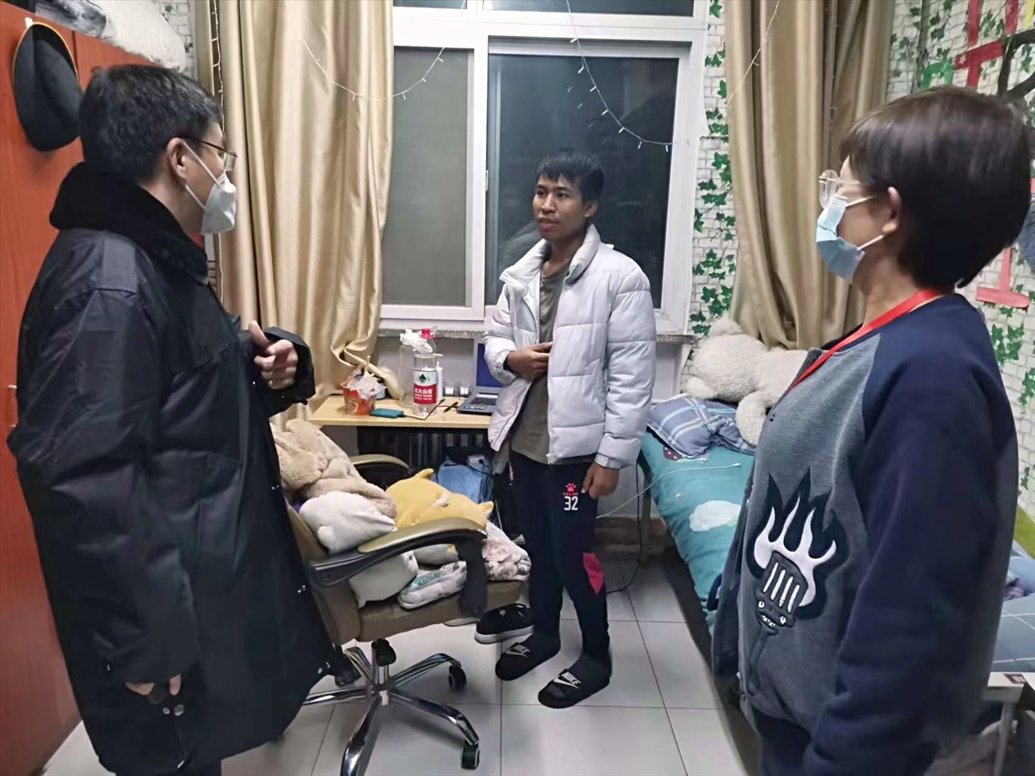 初心如磐,使命在肩。驻校期间,单彬同志还是学生的“指向标”,每天深入宿舍,在叮嘱同学们遵守防疫要求的同时,还督促同学们要认真上网课,是学生心中的“定心丸”,帮助学生疏导紧张情绪,提醒学生按时休息,耐心安抚、指导、鼓励同学们,确保学生在疫情防控期间思想情绪稳定、心理状态积极向上,是时刻给学生“雪中送炭”的好老师,为生病学生送医送药、给家境困难学生给予生活经费资助等等。
