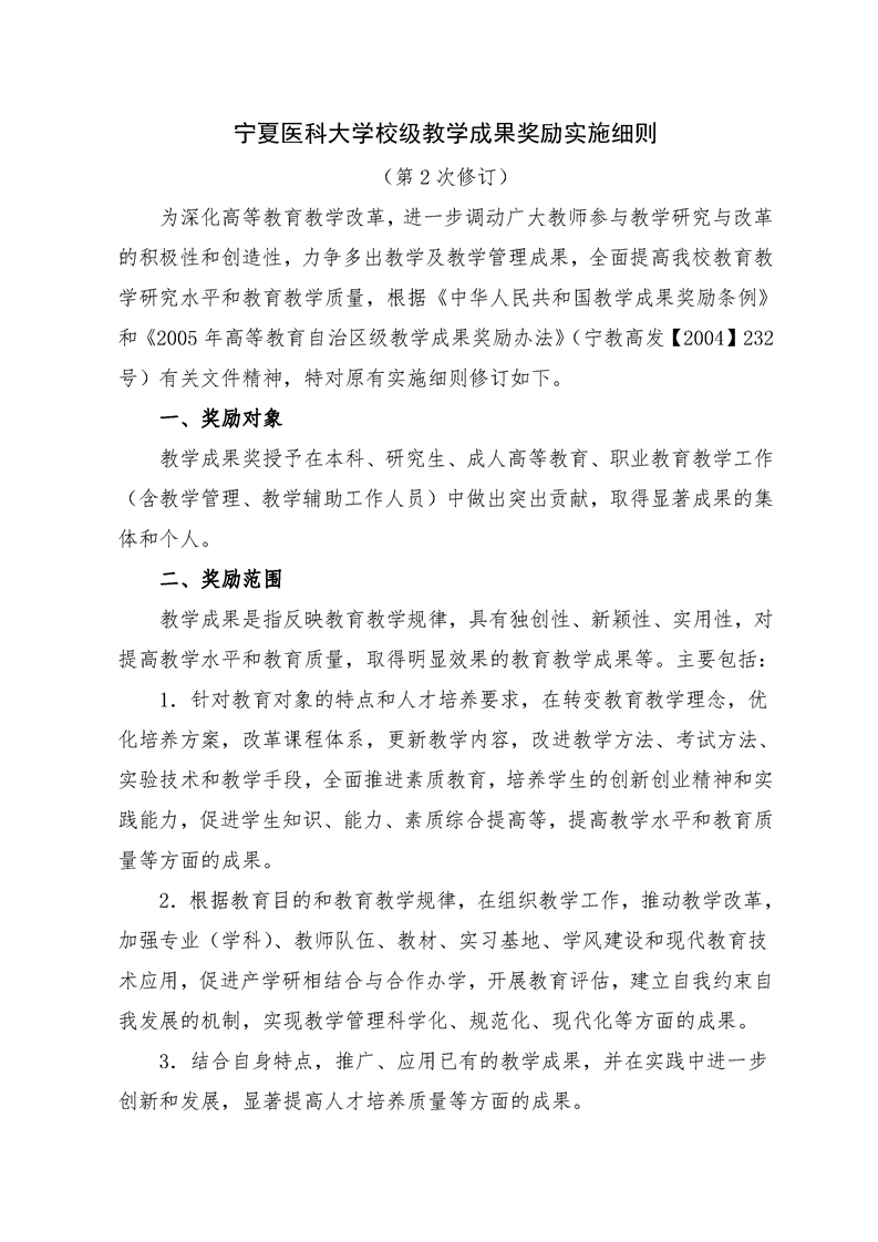 太阳成集团官方网站校级教学成果奖励实施细则 (第2次修订)