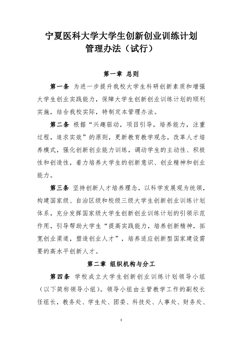 太阳成集团官方网站大学生创新创业训练计划 管理办法(试行)